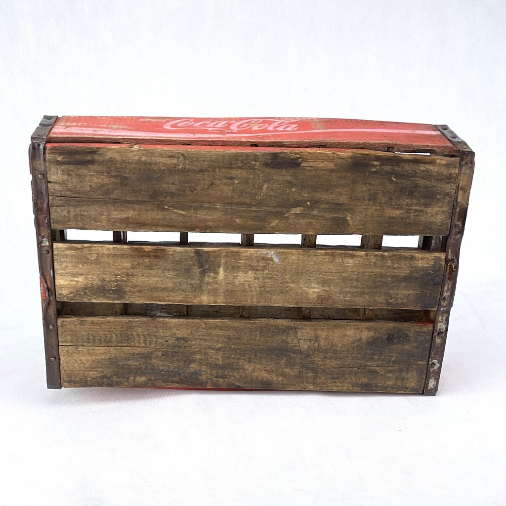Die rote Coca Cola Holzkiste/Getränkekiste hat noch die original Bemalung mit Coca Cola Werbeaufdruck. Eine Flascheinteilung ist vorhanden.