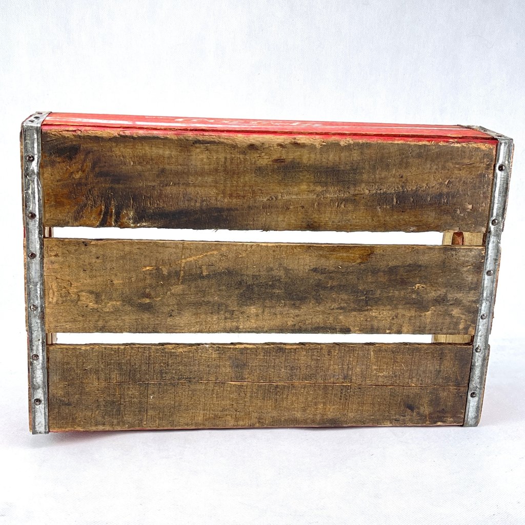 Die rote Coca Cola Holzkiste/Getränkekiste hat noch die original Bemalung mit Coca Cola Werbeaufdruck. Eine Flascheinteilung ist nicht vorhanden.