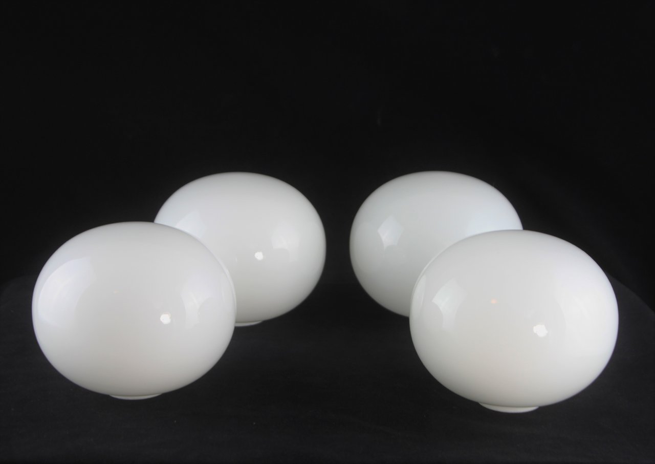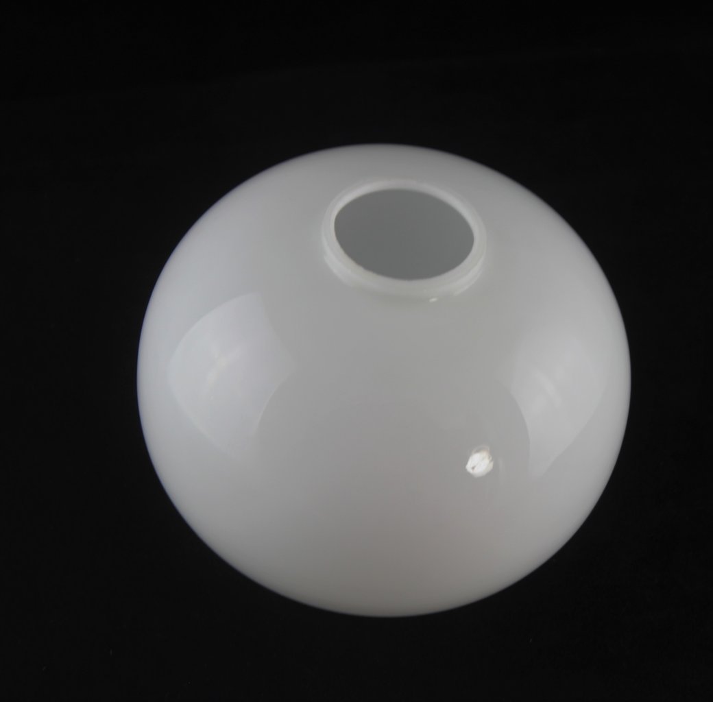 Die ellyptische Lampenkugel ist aus weißem Opalglas. Bei diesem Artikel handelt es sich um ein Original aus seiner Zeit (keine Reproduktion). Kleinere Abweichungen in den Maßen sind somit normal.