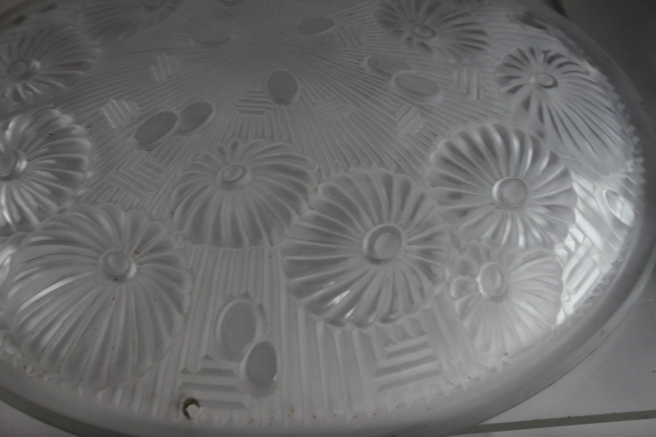 Dieses ART DECO Lampenglas ist von Daum/Loreen Nancy. Bei diesem Artikel handelt es sich um ein Original aus seiner Zeit (keine Reproduktion). Die Glasschale besitzt 3 kleine Löcher zum befestigen einer Halterung.