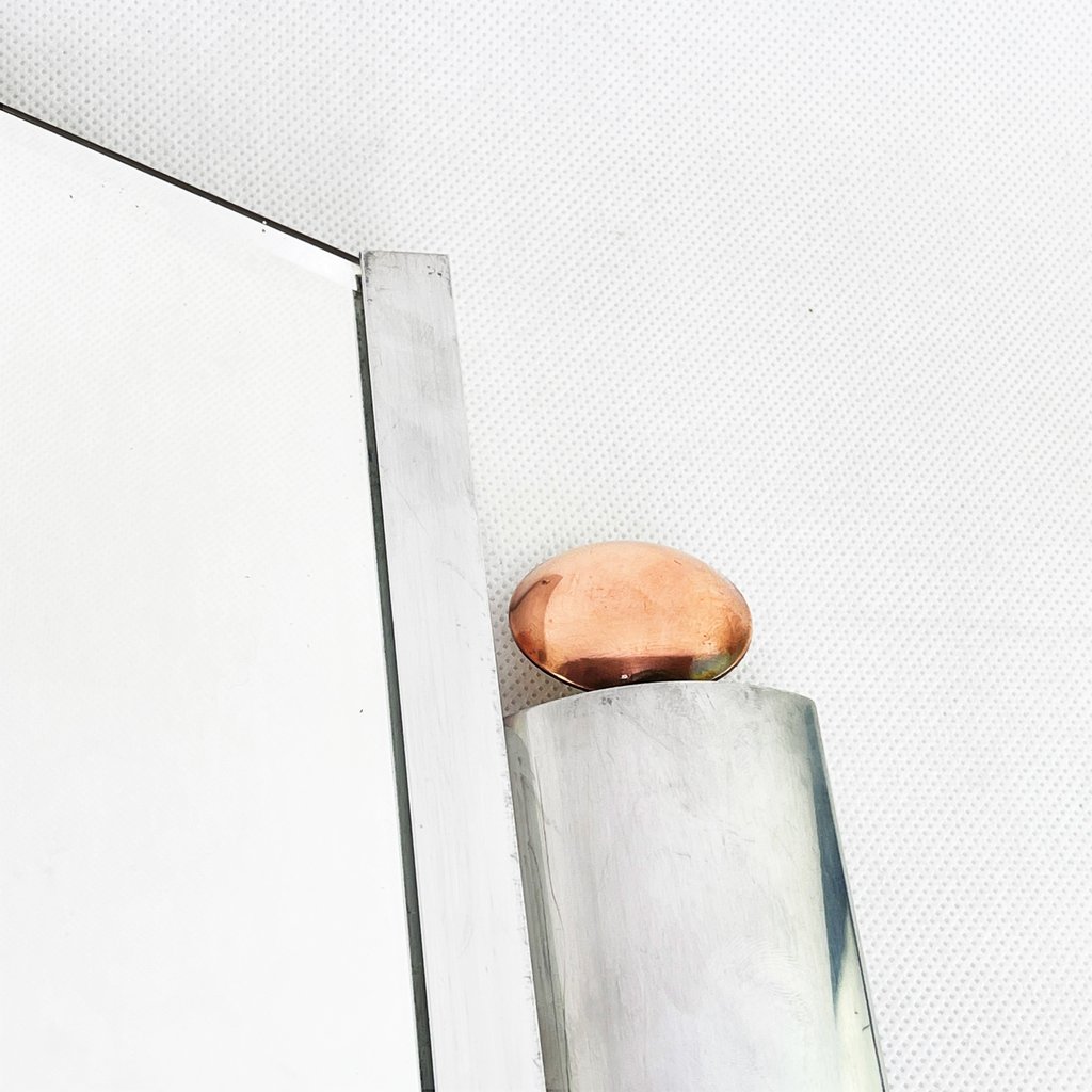 Der Wandspiegel ist ein original Designerklassiker mit steigendem Wert. Aluminium war zur damaligen Zeit ein neuer und sehr moderner Werkstoff. Möbel aus Aluminium waren teurer und begehrter als Chrommöbel. Da Aluminium unter anderem im Flugzeugbau eingesetzt wurde verband man damit die fortschrittliche Moderne.
