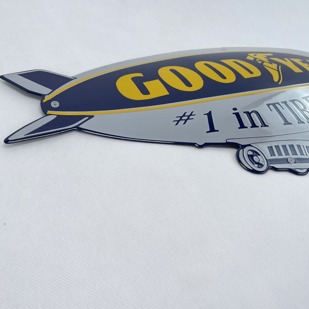 GOODYEAR Luftschiff Emailschild Emaille Schild enamel sign 62 x 27 cm