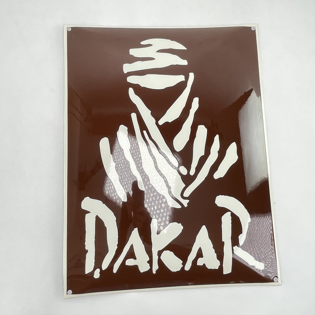 Dieses neuwertige, gewölbte DAKAR – Emailleschild war nie an der Wand angebracht. Es zeigt das Logo der Rallye Paris Dakar.