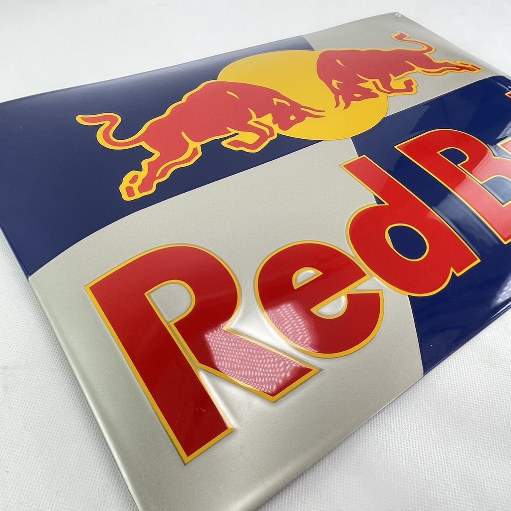 Dieses hochwertige gewölbte RED BULL Logo – Emailleschild war nie an der Wand angebracht. Das Schild hat eine tollen Glanz.